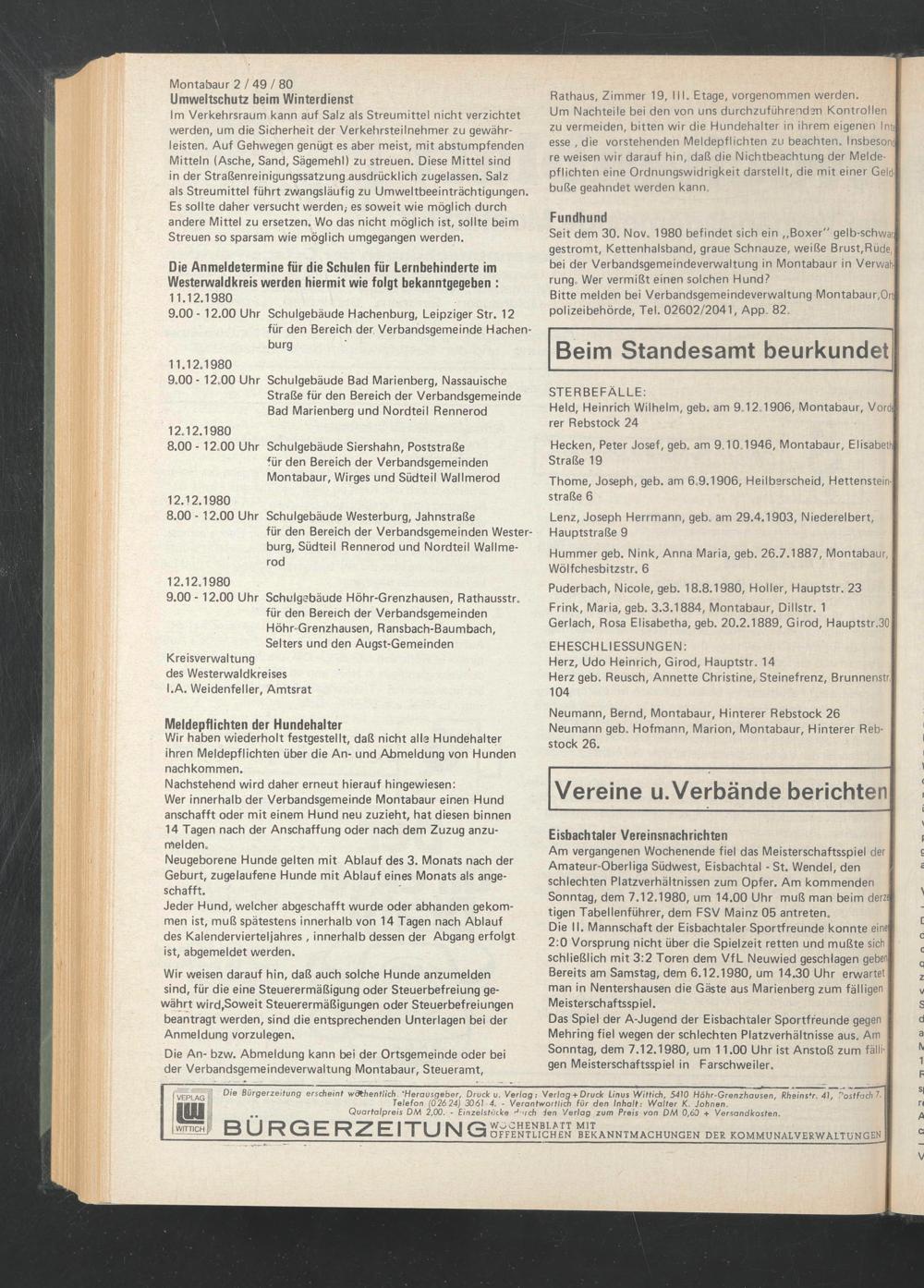 Die Burgerzeitung erscheint wdthentikh. 'Herausgeber, Druck u. Verlag: Verlag + Druck Linus Wittich, 5410 Höhr-Grenzhausen, Rheins+r. 41, Postfach 7.