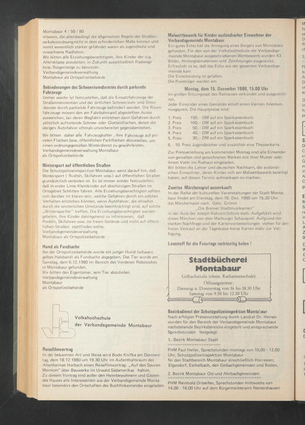 ln der Reihe der kulturellen Veranstaltungen der Stadt Montabaur findet am Dienstag, dem 16. Dez. 1980 um 15.30 Uhr das Märchenspiel nach Gebr. Grimm