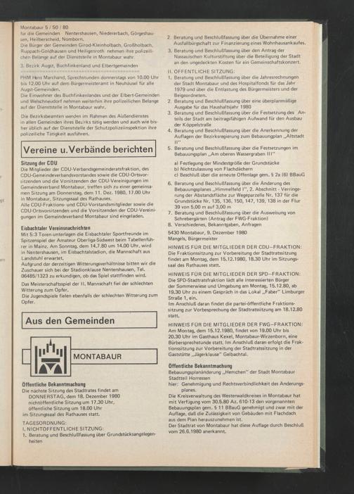 5430 Montabaur, 9. Dezember 1980 Mangels, Bürgermeister