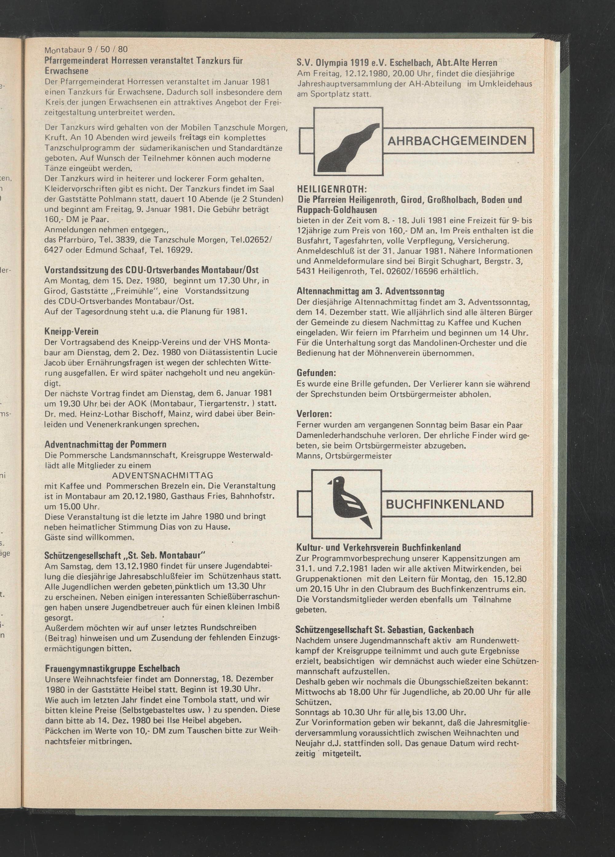Am Montag, dem 15. Dez. 1980, beginnt um 17.30 Uhr, in Girod, Gaststätte „Freimühle", eine Vorstandssitzung des CDU-Ortsverbandes Montabaur/Ost.