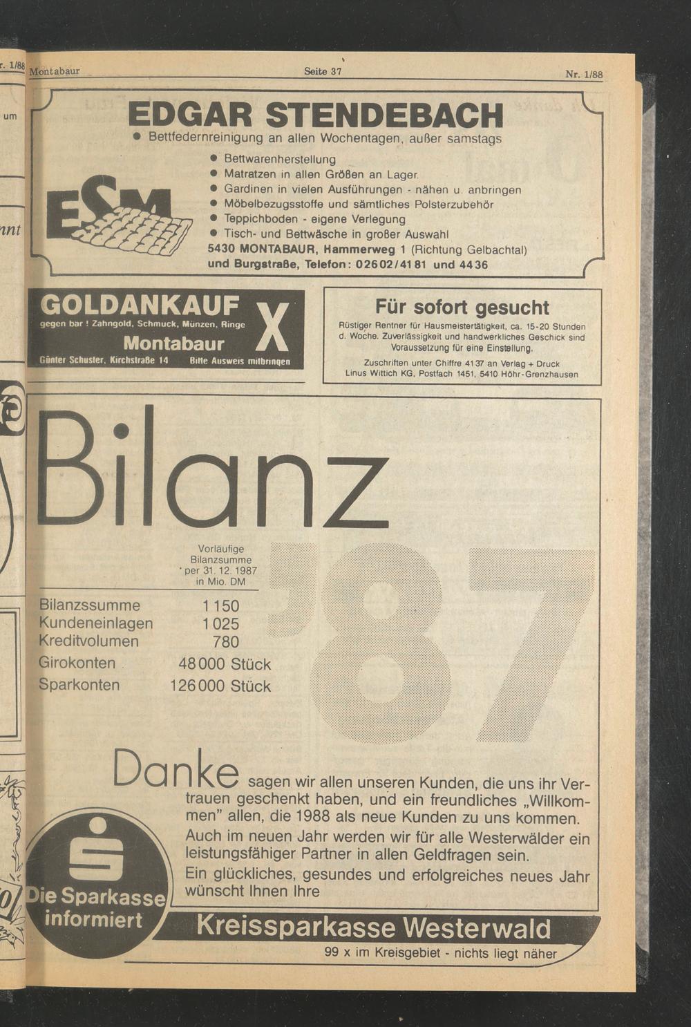 Zuschriften unter Chiffre 4137 an Verlag + Druck Linus Wittich KG, Postfach 1451, 5410 Höhr-Grenzhausen