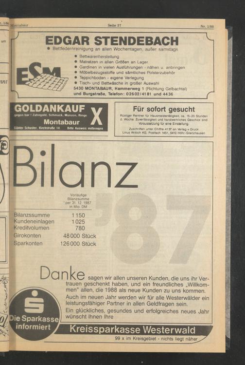 sagen wir allen unseren Kunden, die uns ihr Vertrauen geschenkt haben, und ein freundliches „Willkommen” allen, die 1988 als neue Kunden zu uns kommen.