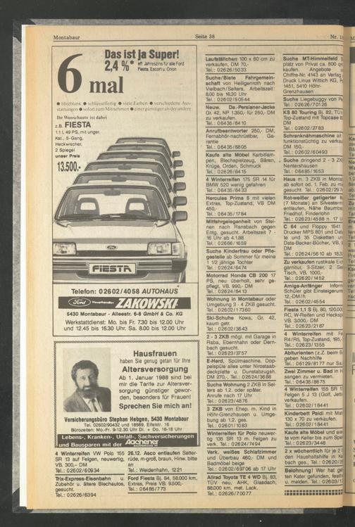 eit. Jahreszins für alle Ford Fiesta, Escort u. Orion