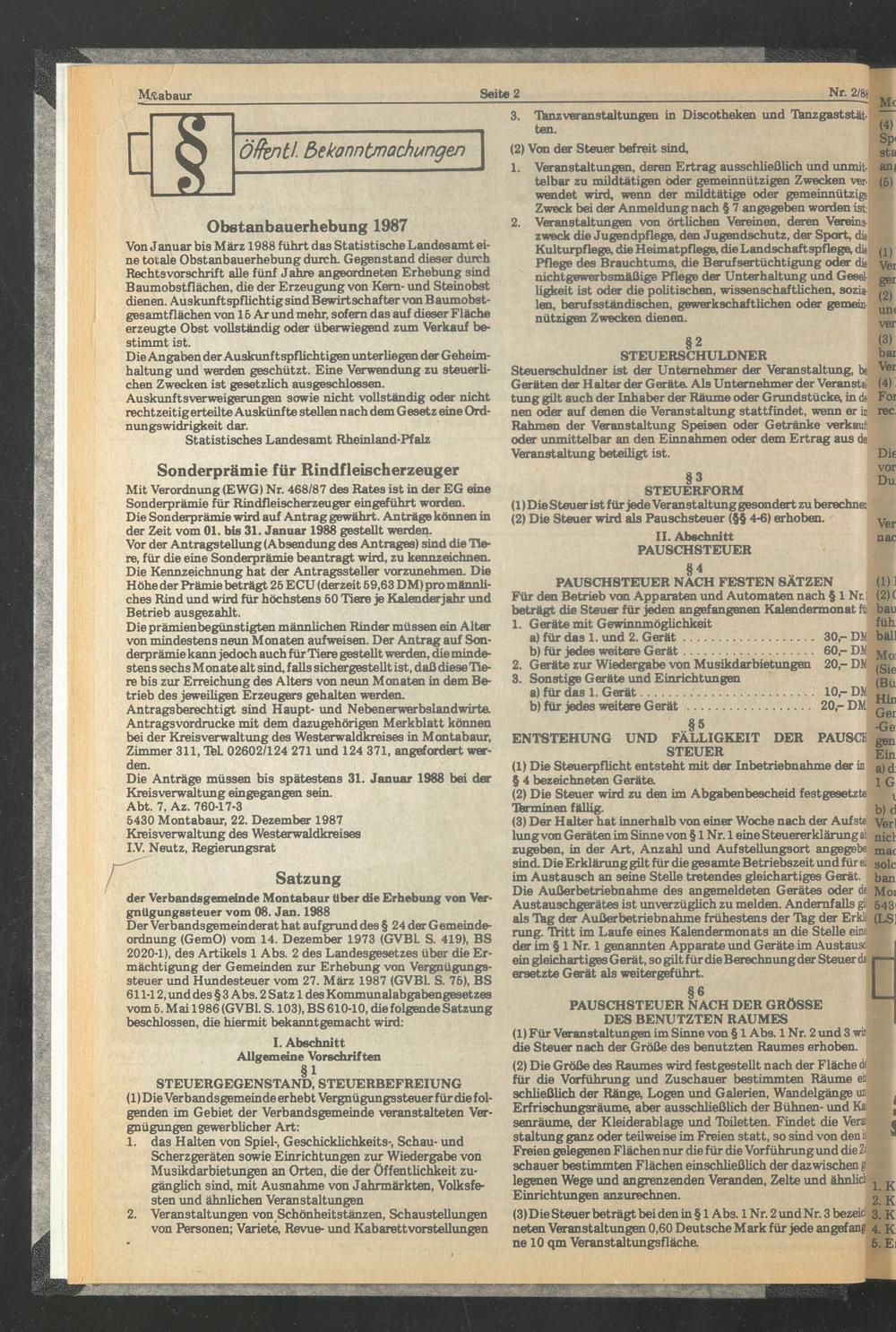 der Verbandsgemeinde Montabaur Uber die Erhebung von Vergnügungssteuer vom 08. Jan. 1988