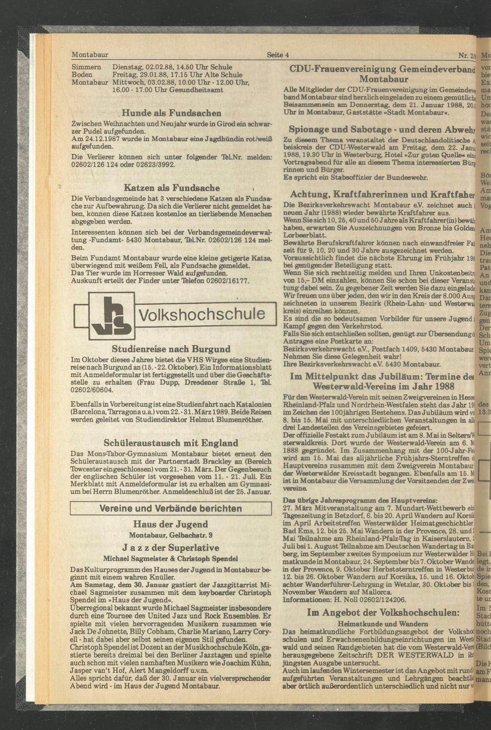 Simmem Dienstag, 02.02.88,14.60 Uhr Schule Boden Freitag, 29.01.88,17.16 Uhr Alte Schule Montabaur Mittwoch, 03.02.88,10.00 Uhr -12.00 Uhr, 16.00 • 17.00 Uhr Gesundheitsamt