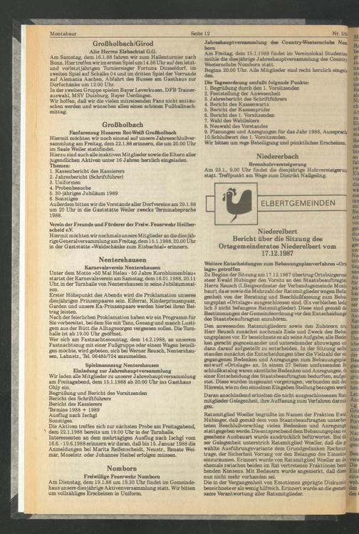 Bericht über die Sitzung des Ortsgemeinderates Niederelbert vom 17.12.1987