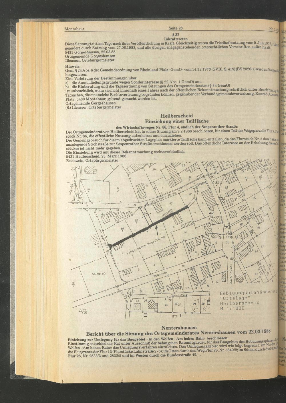 Die Einziehung wird mit dieser Bekanntmachung rechtsverbindlich. 5431 Heilberscheid, 23. März 1988 Reichwein, Ortsbürgermeister