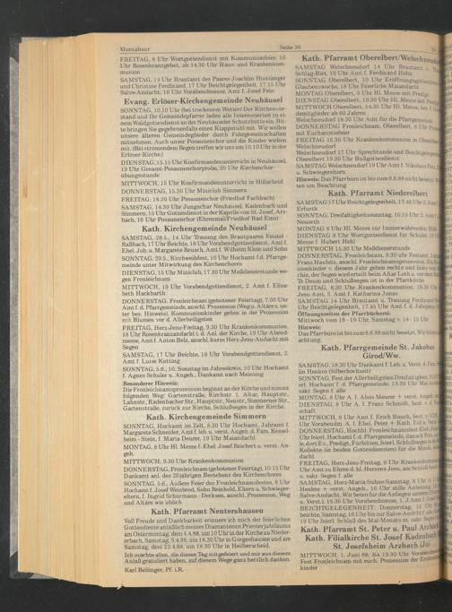 MITTWOCH 15.30 Uhr Meßdienerstunde DONNERSTAG, Fronleichnam, 9.30 uhr Festamt, Jahri Franz Haubitz, anschl. Fronleichnamsprozession. DieKoa nionkinder v. diesem Jahr gehen rechts und links vom 9 chin, der Segen wird erteilt beim Altar Loth u. vor dem Rat] Tfe Deum und Schlußsegen ist in der Pfarrkirche I FREITAG, 8.30 Uhr Krankenkommunion, 18.30 Uhr] Jesu-Amt, 3. Amt f. Katharina Jonas I