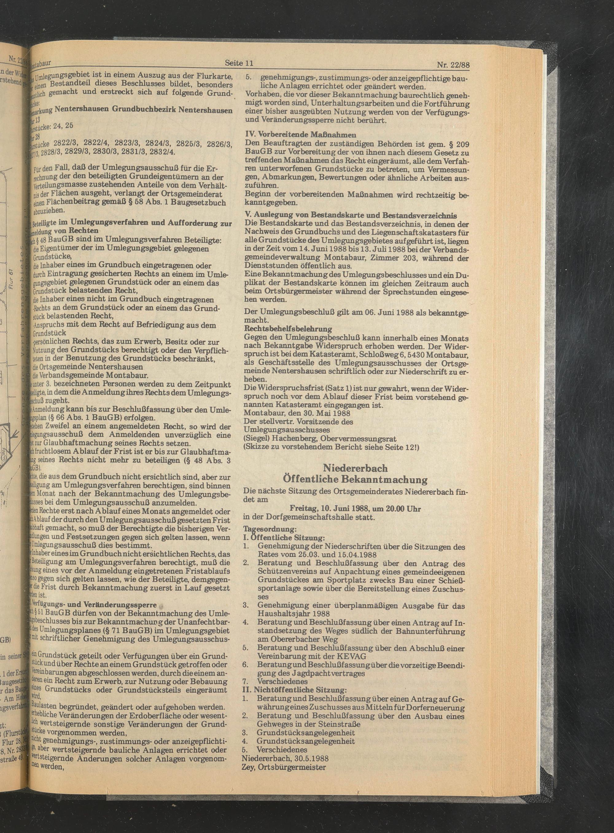 4. Grundstücksangelegenheit 6. Verschiedenes Niedererbach, 30.5.1988