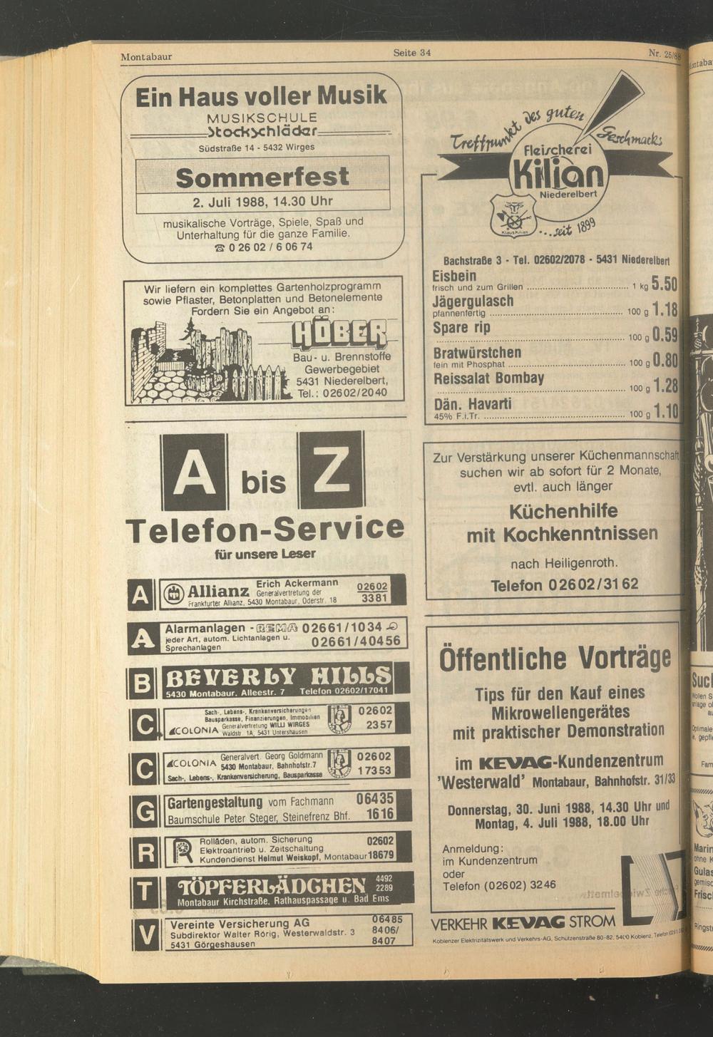 Donnerstag, 30. Juni 1988,14.30 Uhr und Montag, 4. Juli 1988, 18.00 Uhr