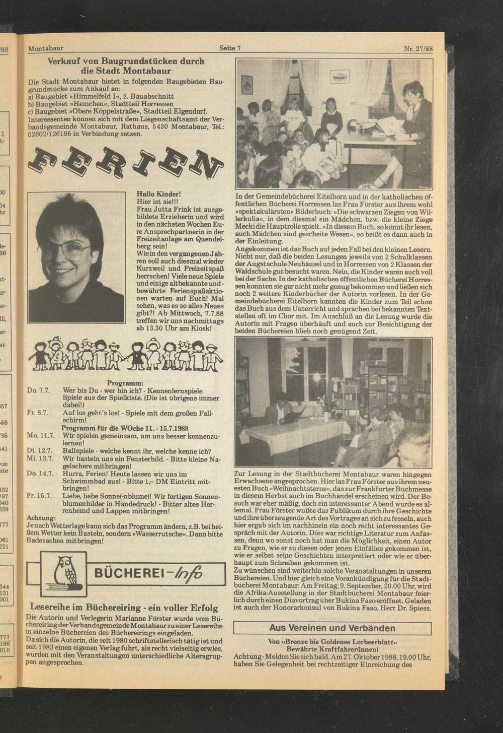 Wie in den vergangenen Jahren soll auch diesmal wieder Kurzweil und Freizeitspaß herrschen! Viele neue Spiele und einige altbekannte und - bewährte Ferienspaßaktionen warten auf Euch! Mal sehen, was es so alles Neues gibt?! Ab Mittwoch, 7.7.88 treffen wir uns nachmittags ab 13.30 Uhr am Kiosk!