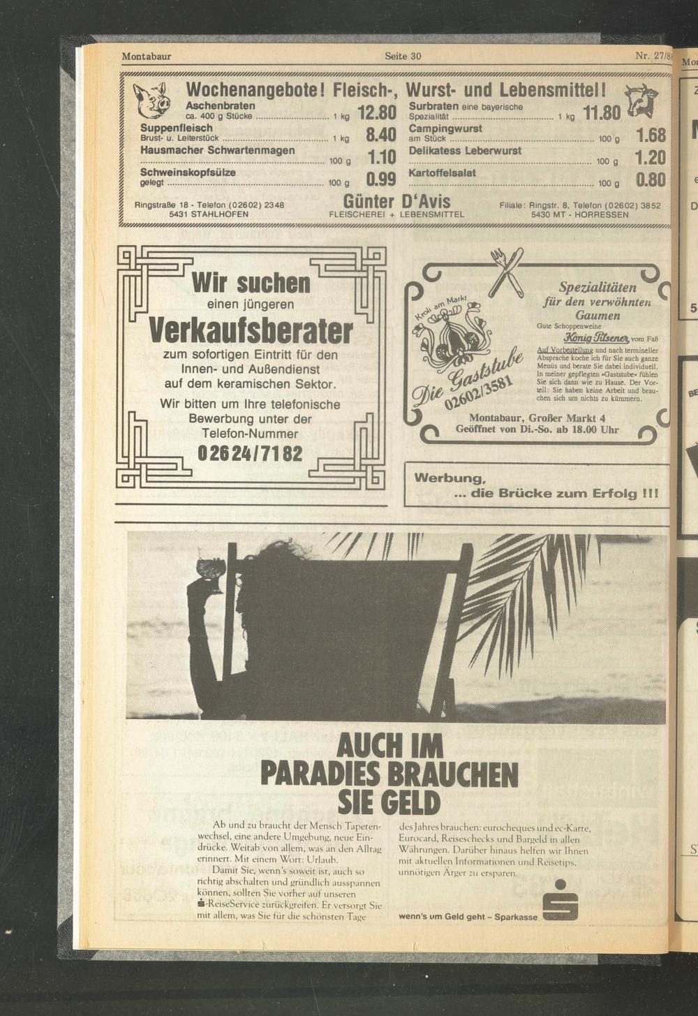 __ Günter 0‘Avis Filiale: Ringstr. 8, Telefon (02602) 3852