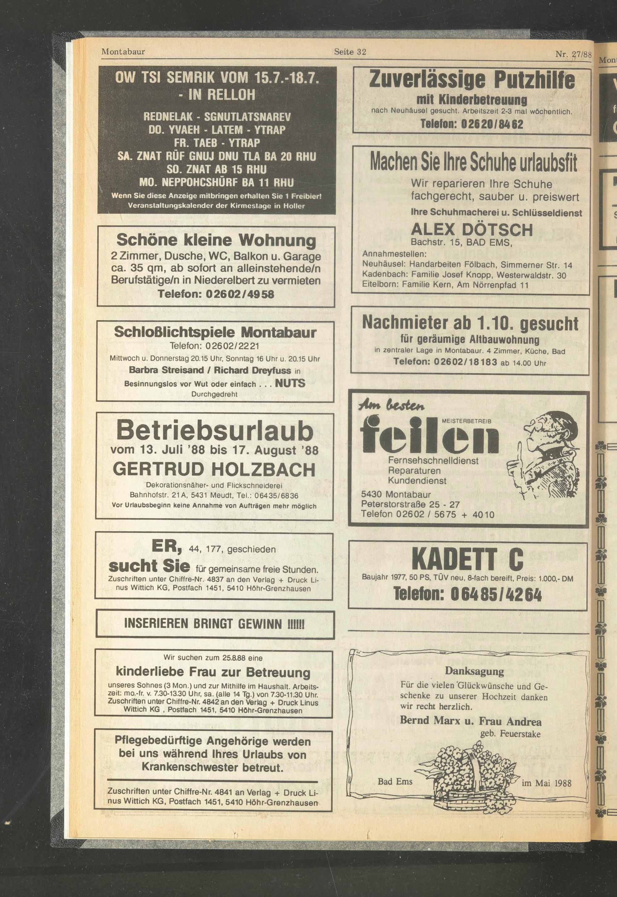Zuschriften unter Chiffre-Nr. 4837 an den Verlag + Druck Linus Wittich KG, Postfach 1451, 5410 Höhr-Grenzhausen