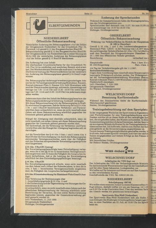Gegen diese Anordnung kann innerhalb eines Monats nach Bi /gebac kanntgabe Widerspruch erhoben werden. Der Widerspruch iij 6 bei der Verbandsgemeindeverwaltung Montabaur (Bauamt Konrad-Adenauer-Platz 8,5430 Montabaur, schrif tbch oder zu Am S;