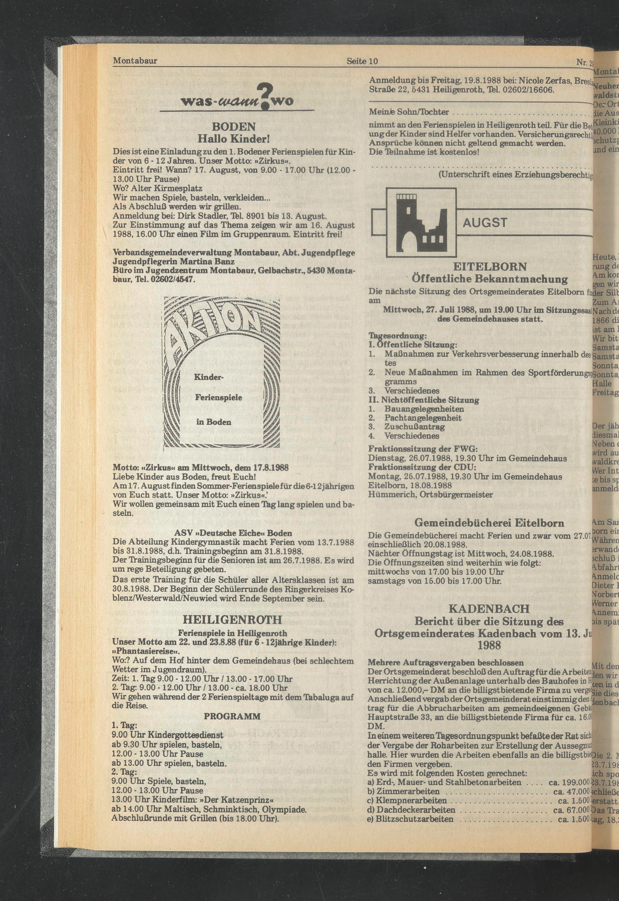 Montag, 25.07.1988,19.30 Uhr im Gemeindehaus Eitelbom, 18.08.1988 Hümmerich, Ortsbürgermeister