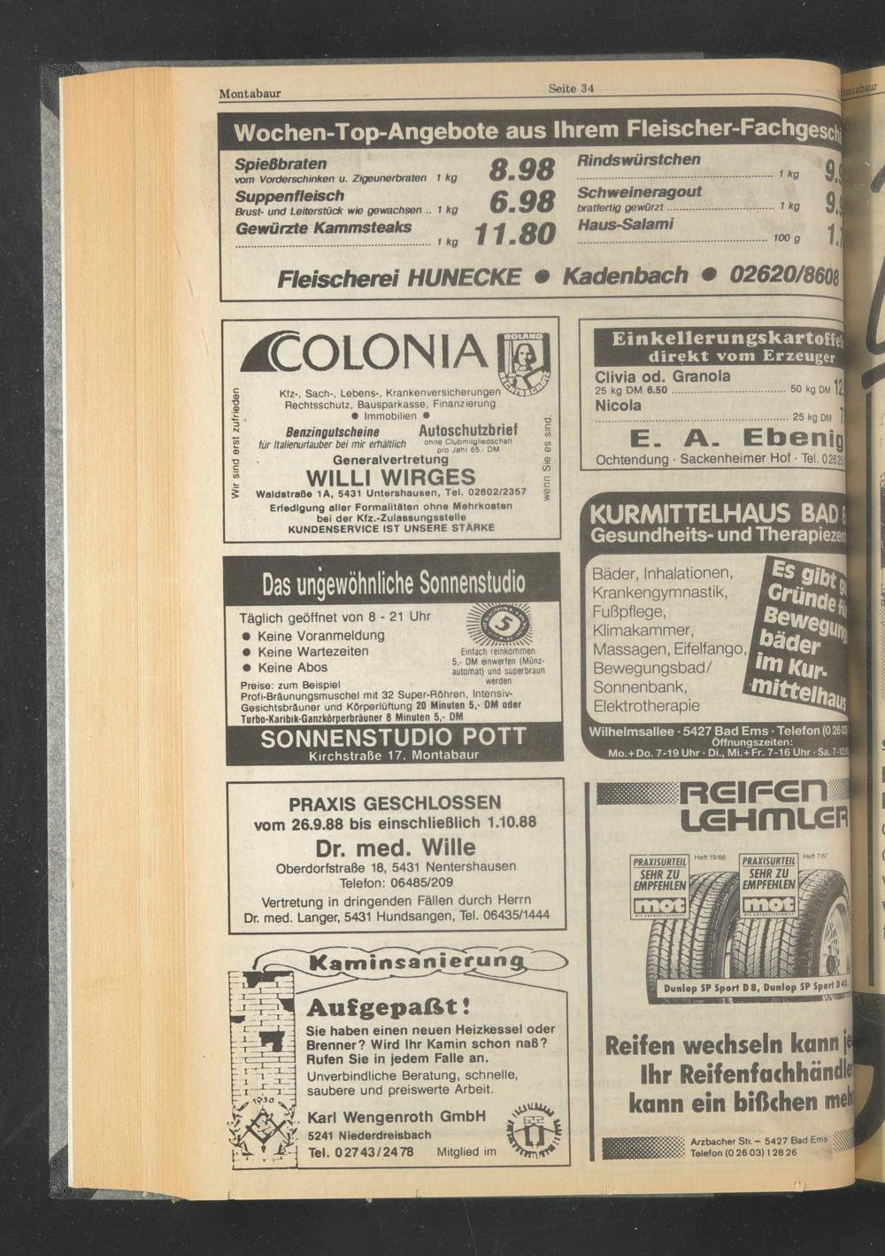 Wilhelmsallee • 5427 Bad Ems • Telefon (02603)' Öffnungszeiten:
