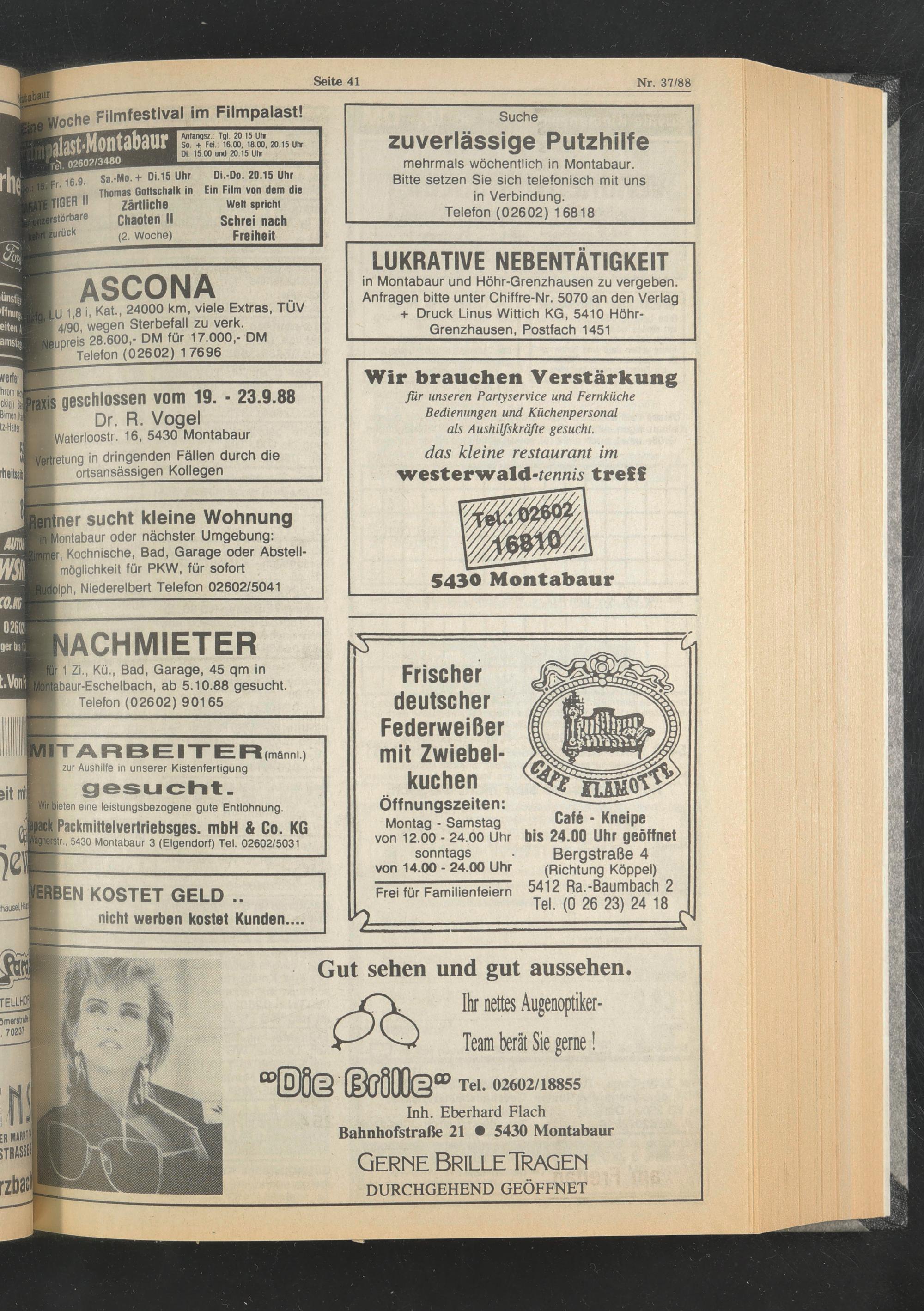 in Montabaur und Höhr-Grenzhausen zu vergeben. Anfragen bitte unter Chiffre-Nr. 5070 an den Verlag + Druck Linus Wittich KG, 5410 Höhr- Grenzhausen, Postfach 1451
