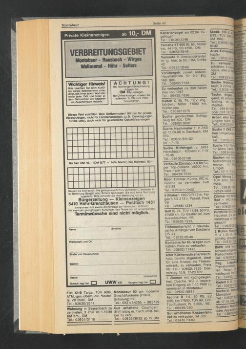 Bis hier DM 10t— (DM 877 + 14% MwSt.) Bei Mehrtext 15—