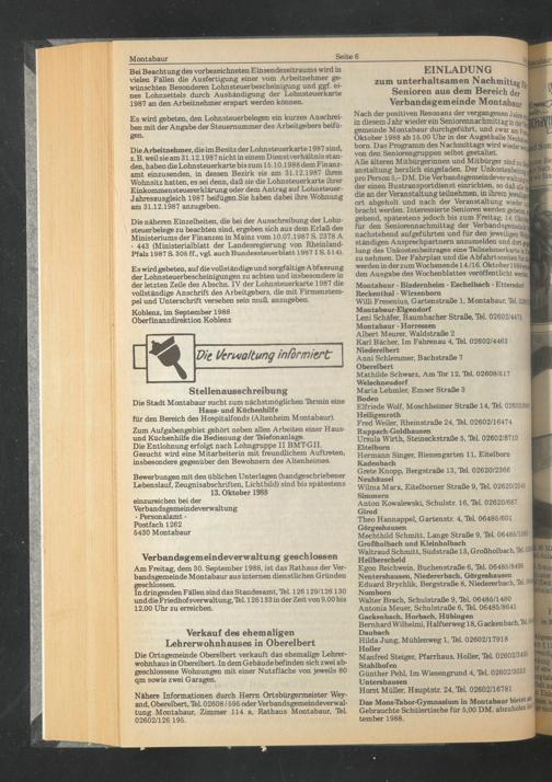 Am Freitag, dem 30. September 1988, ist das Rathaus der Verbandsgemeinde Montabaur aus internen dienstlichen Gründen geschlossen.