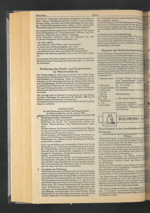 Die Anträge sind in einfacher Ausfertigung mit den entsprechenden Unterlagen bis spätestens 20. Oktober 1988 bei der Kreisverwaltung Montabaur einzureichen.