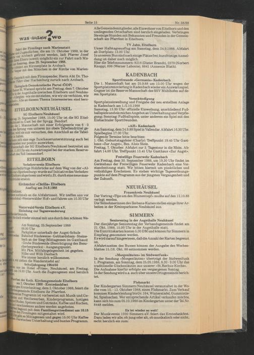 Abfahrtszeiten des Busses können der Ausgabe des Wochenblattes 15./16. Okt. 88 entnommen werden.