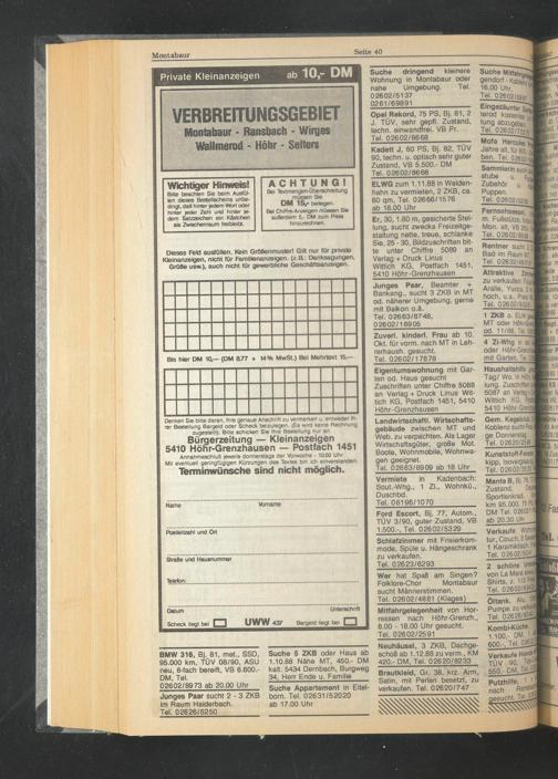 Bürgerzeitung — Kleinanzeigen 5410 Hönr-Grenzhausen — Postfach 1451