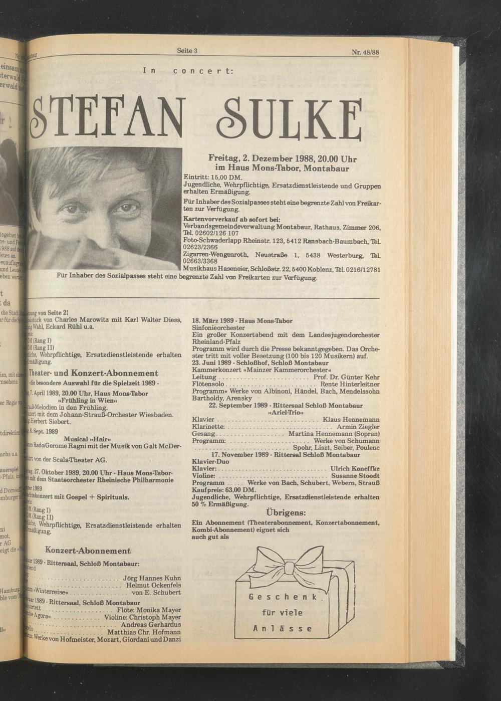 : ' W Freitag, 2. Dezember 1988, 20.00 Uhr in® Haus Mons-Tabor, Montabaur