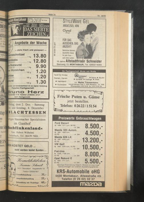 • Kurzwaren Konrad-Adenauer-Platz 2, 5430 Montabaur, Tel. 2498 Öffnungszeiten 9.00-18.00, Sa. 9.00-13.00 Uhr