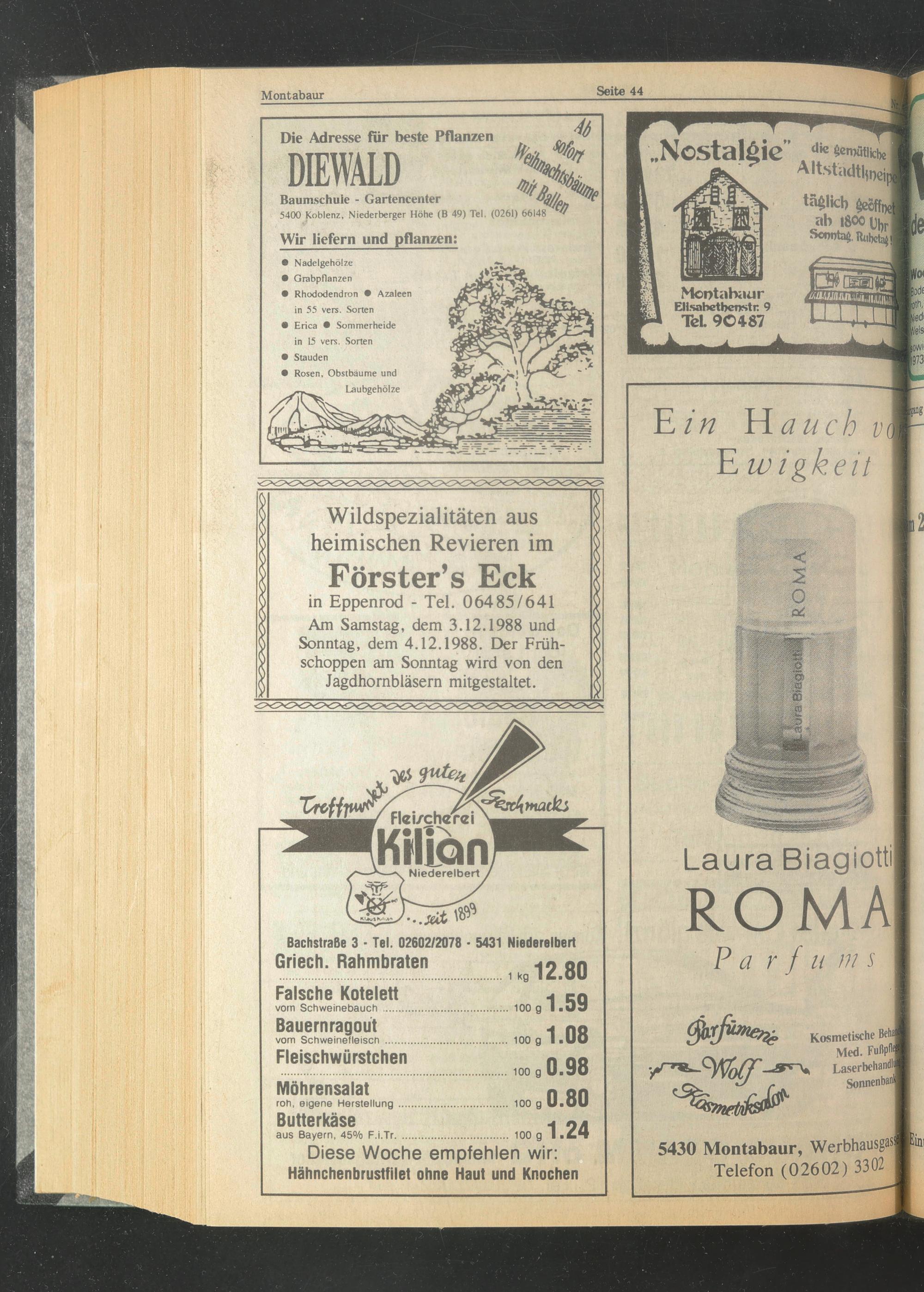 Am Samstag, dem 3.12.1988 und Sonntag, dem 4.12.1988. Der Frühschoppen am Sonntag wird von den Jagdhornbläsern mitgestaltet.