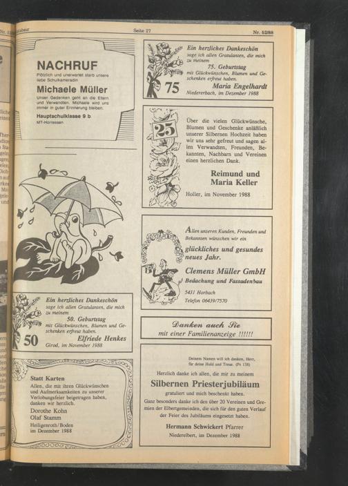 Über die vielen Glückwünsche, Blumen und Geschenke anläßlich unserer Silbernen Hochzeit haben wir uns sehr gefreut und sagen allen Verwandten, Freunden, Bekannten, Nachbarn und Vereinen einen herzlichen Dank.