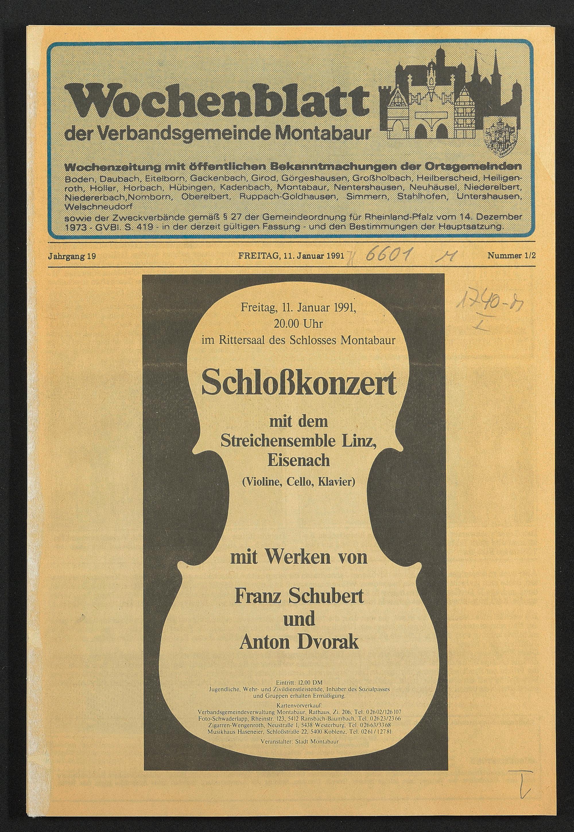 Verbandsgemeindeverwaltung Montabaur, Rathaus, Zi. 206, Tel. 02602/126107 Foto-Schwaderlapp, Rheinstr. 123, 5412 Ransbach-Raumbach, Tel. 02623/2366 Zigarren-Wengenroth, Neustraße 1, 5438 Westerburg, Tel. 02663/3368 Musikhaus Haseneier, Schloßstraße 22, 5400 Koblenz, Tel. 0261/12781