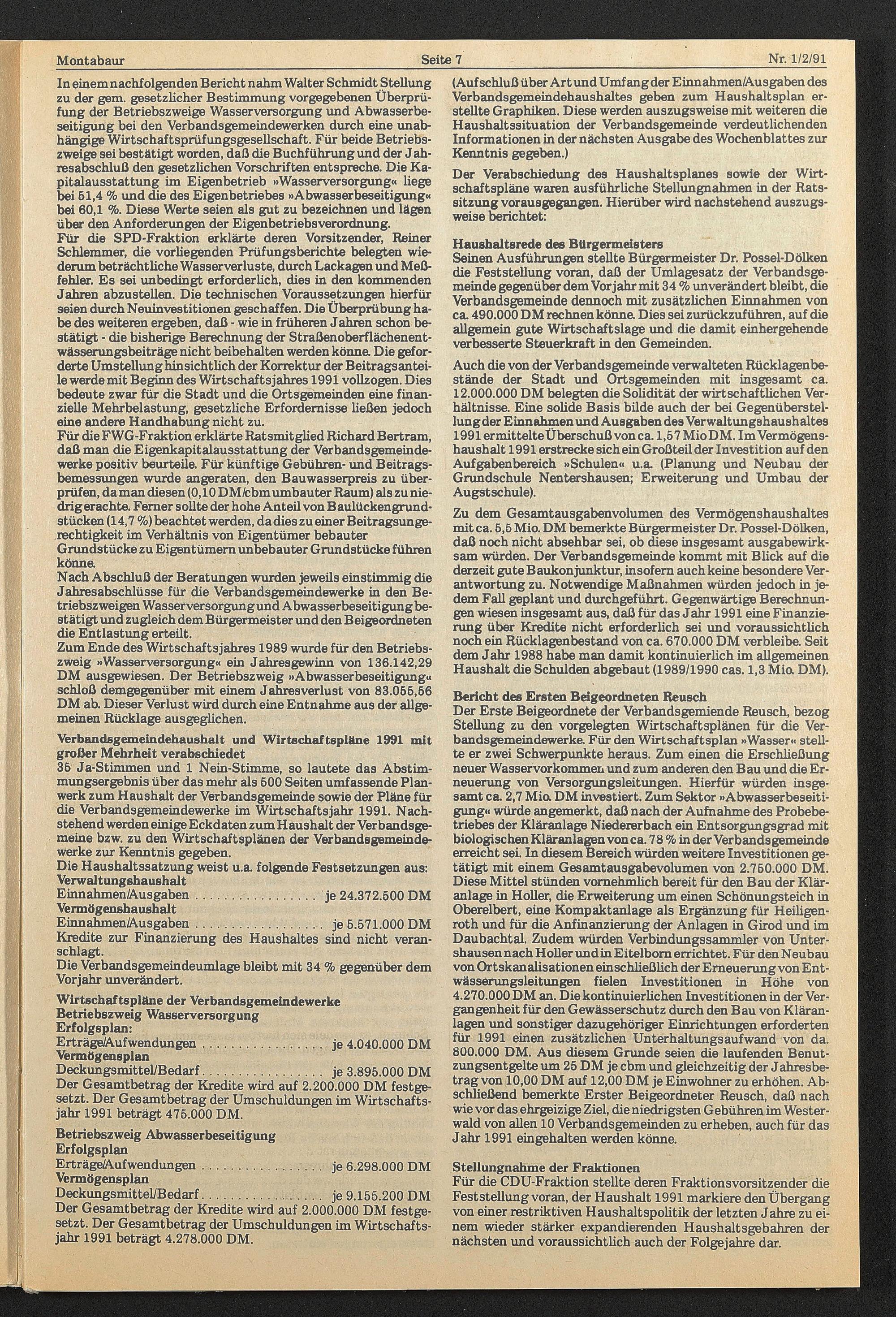 Verbandsgemeindehaushalt und Wirtschaftspläne 1991 mit großer Mehrheit verabschiedet