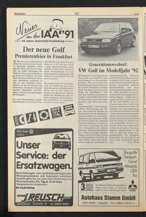 GP. Wer ihn zum Greifen nahe erleben will, muß sich noch bis zum 12. September gedulden. Dann nämlich öffnet die IAA in Frankfurt, die größte Motorshow der Welt, ihre Tore. Und ein Wolfsburger feiert dort Premiere: der neue Golf. Technisch verbessert und optisch überarbeitet präsentiert er sich mit den bewährten Eigenschaften, die ihn mit Abstand zum beliebtesten Automobil in Europa machten: Sparsamkeit, Zuverlässigkeit, Komfort und großzügiges Raumangebot.
