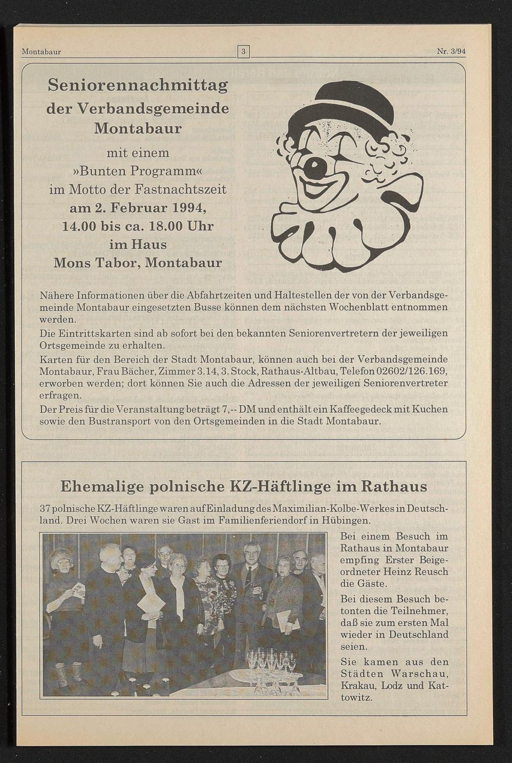 Der Preis für die Veranstaltung beträgt 7,— DM und enthält ein Kaffeegedeck mit Kuchen sowie den Bustransport von den Ortsgemeinden in die Stadt Montabaur.