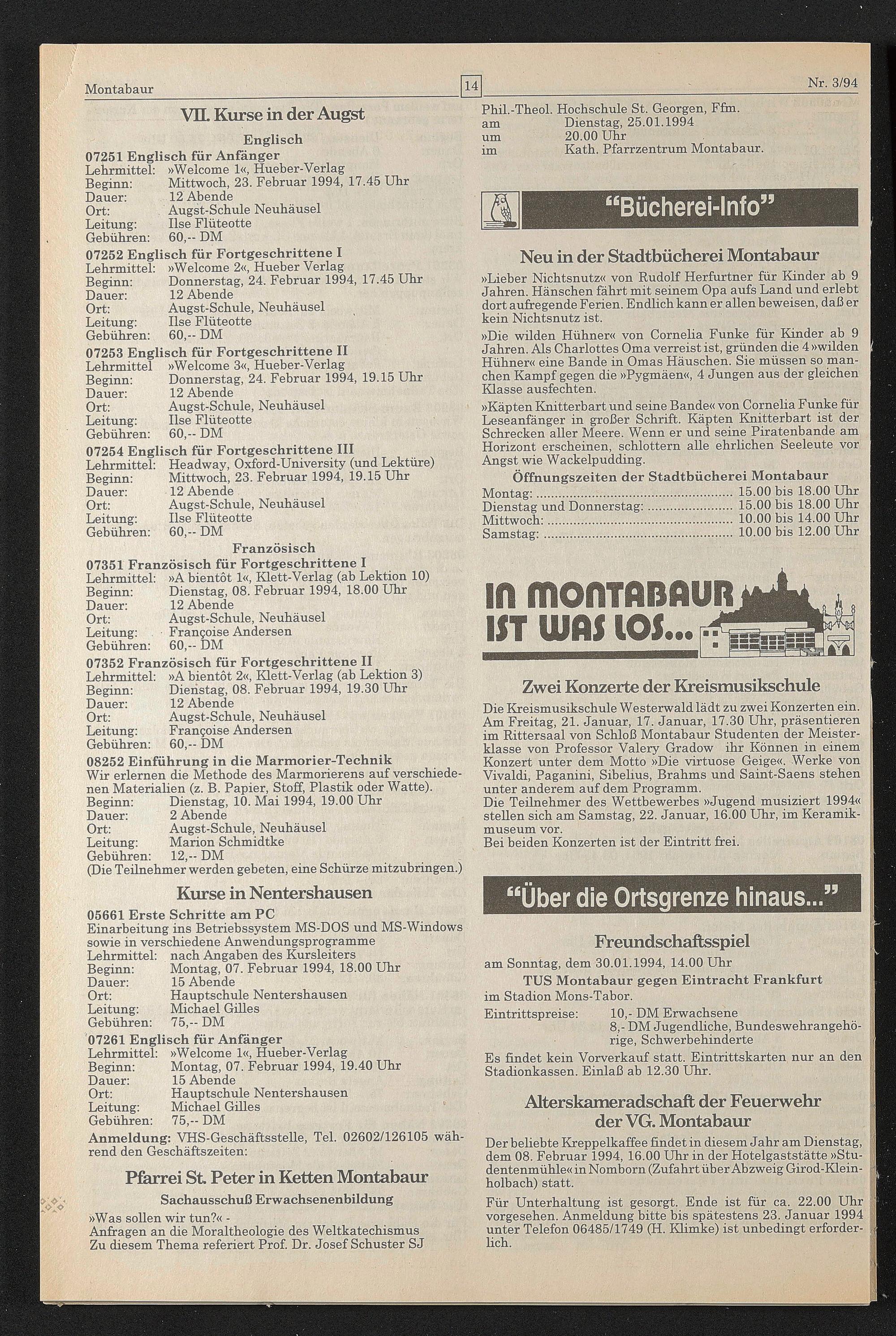 Für Unterhaltung ist gesorgt. Ende ist für ca. 22.00 Uhr vorgesehen. Anmeldung bitte bis spätestens 23. Januar 1994 unter Telefon 06485/1749 (H. Klimke) ist unbedingt erforderlich.