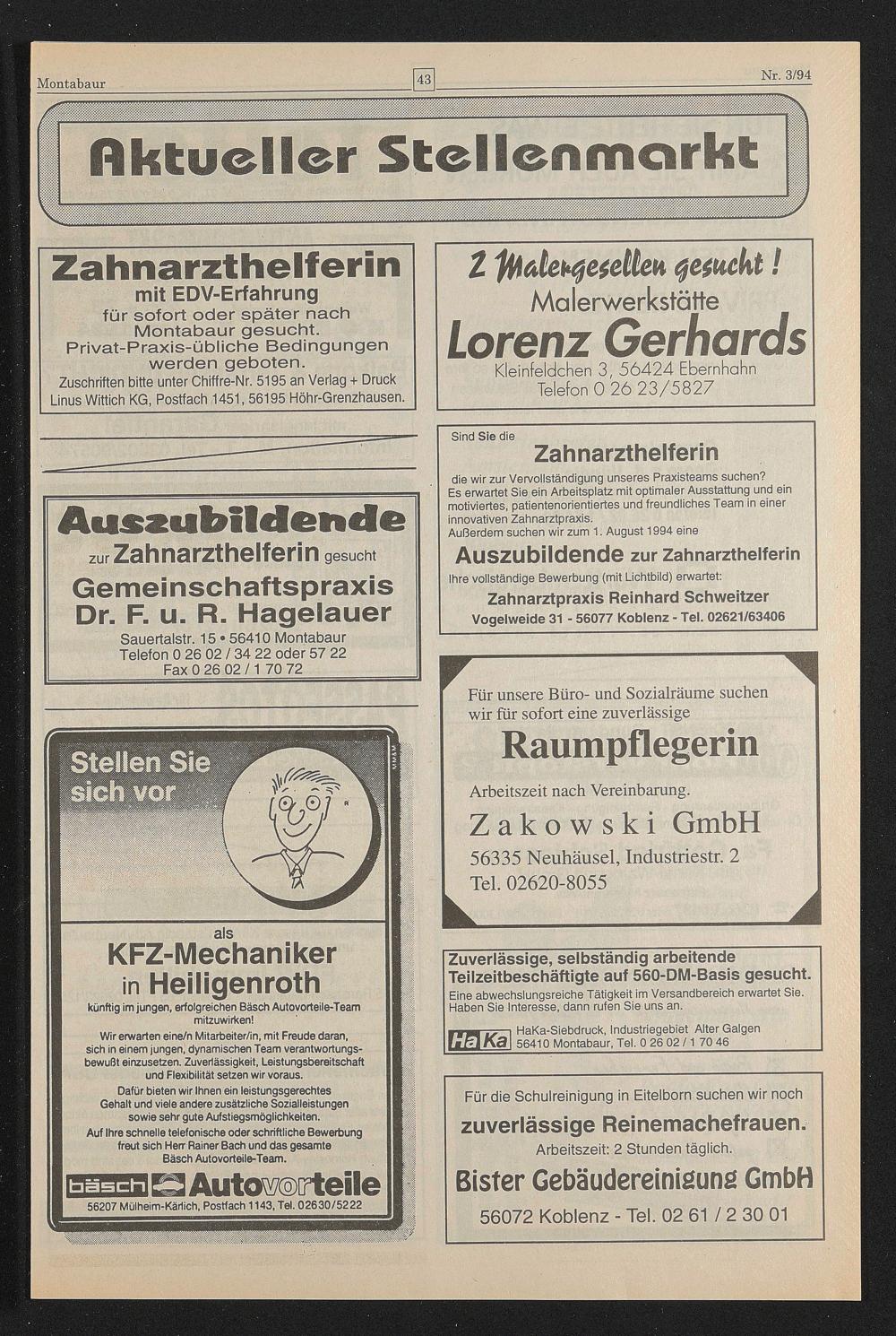 Zuschriften bitte unter Chiffre-Nr. 5195 an Verlag + Druck Linus Wittich KG, Postfach 1451,56195 Höhr-Grenzhausen.