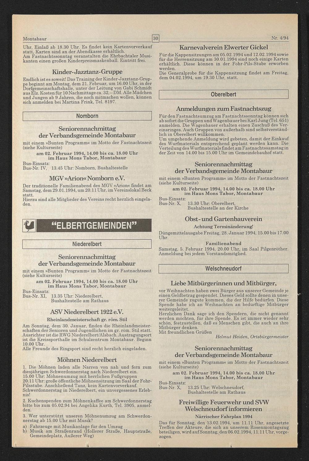 am 02. Februar 1994,14.00 bis ca. 18.00 Uhr im Haus Mons Tabor, Montabaur Bus-Einsatz: