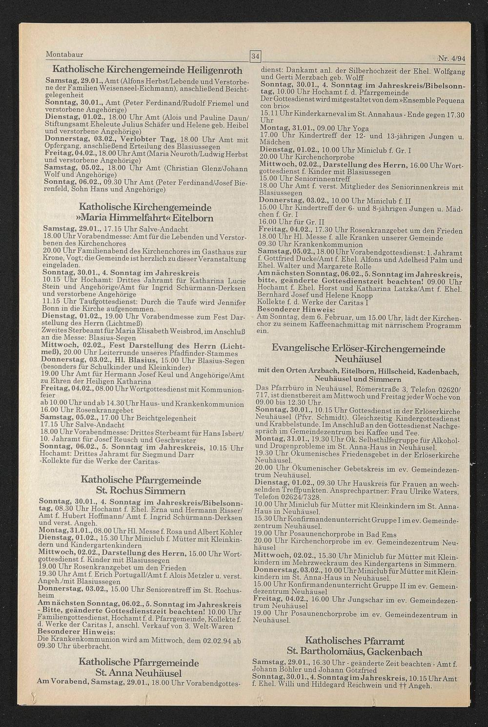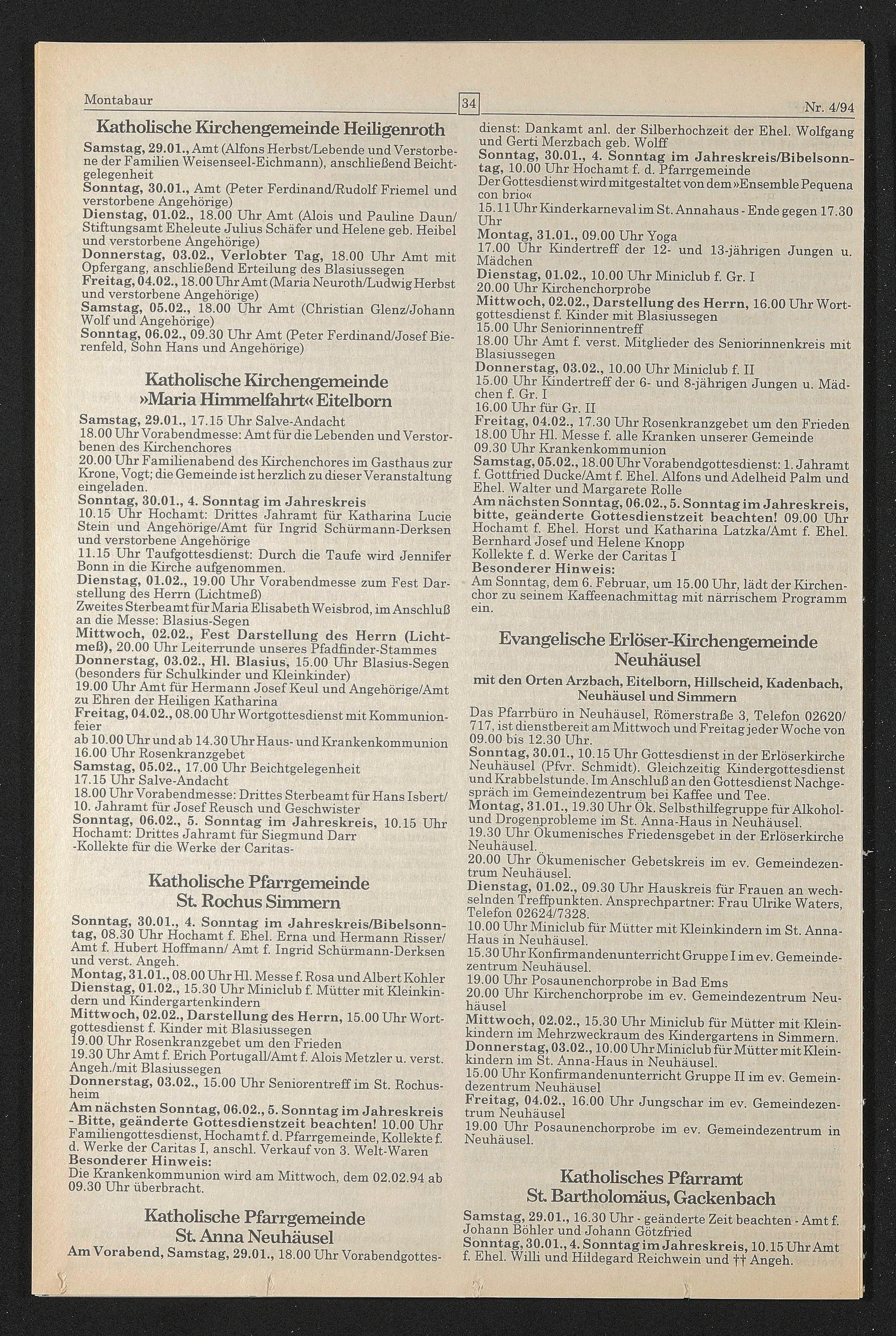 Die Krankenkommunion wird am Mittwoch, dem 02.02.94 ab 09.30 Uhr überbracht.