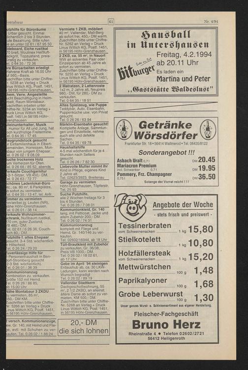 Freitag, 4.2.1994 . ab 20.11 Uhr