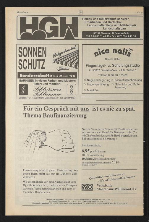 Hauptstelle Montabaur, Tel: 0 26 02 /13 30 - Niederlassung Wallmerod, Tel: 06435/6011*
