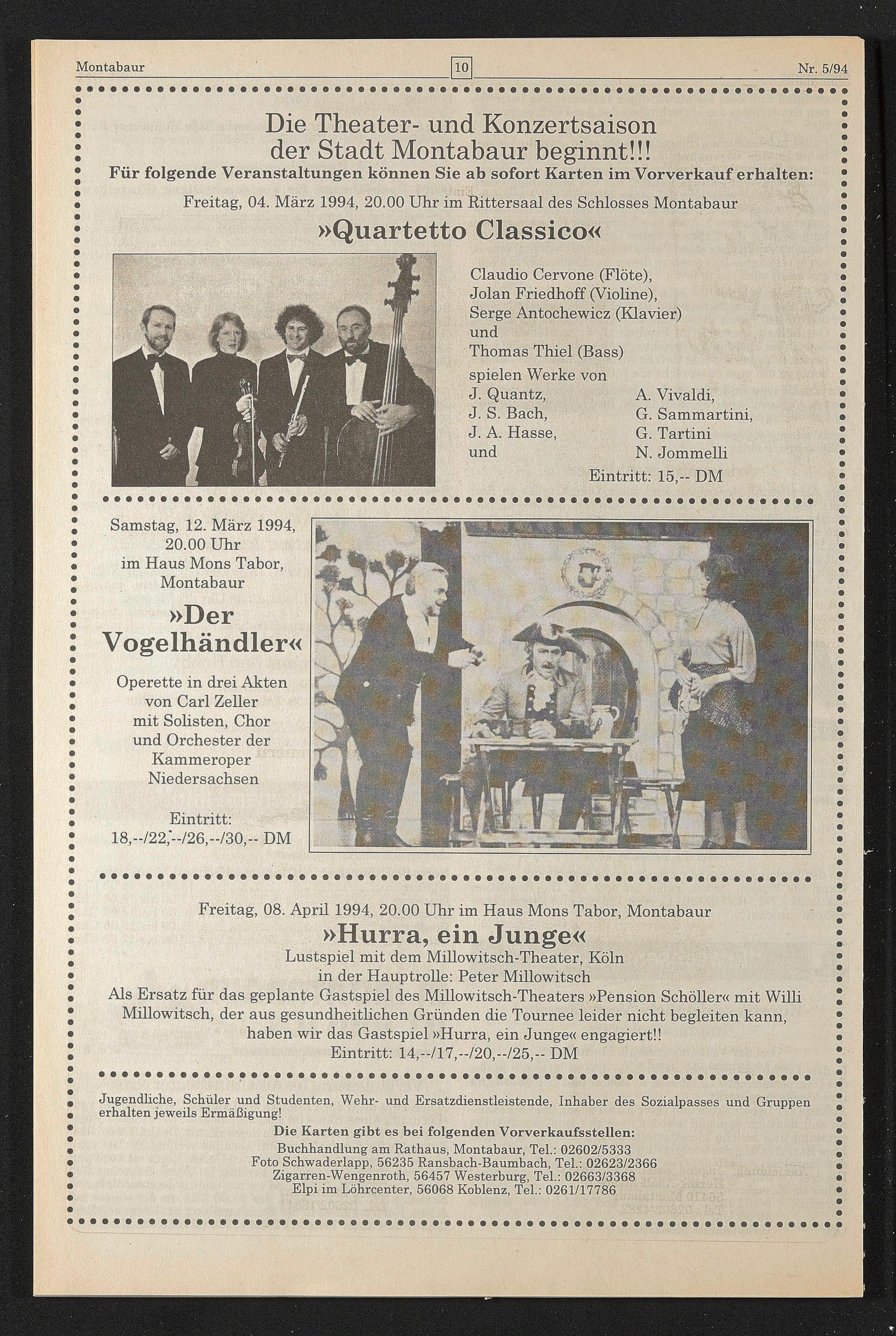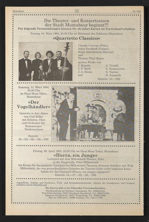 Freitag, 04. März 1994, 20.00 Uhr im Rittersaal des Schlosses Montabaur