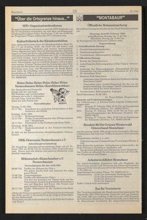 5. Verschiedenes, Bekanntgaben, Anfragen 56410 Montabaur, 01.02.1994
