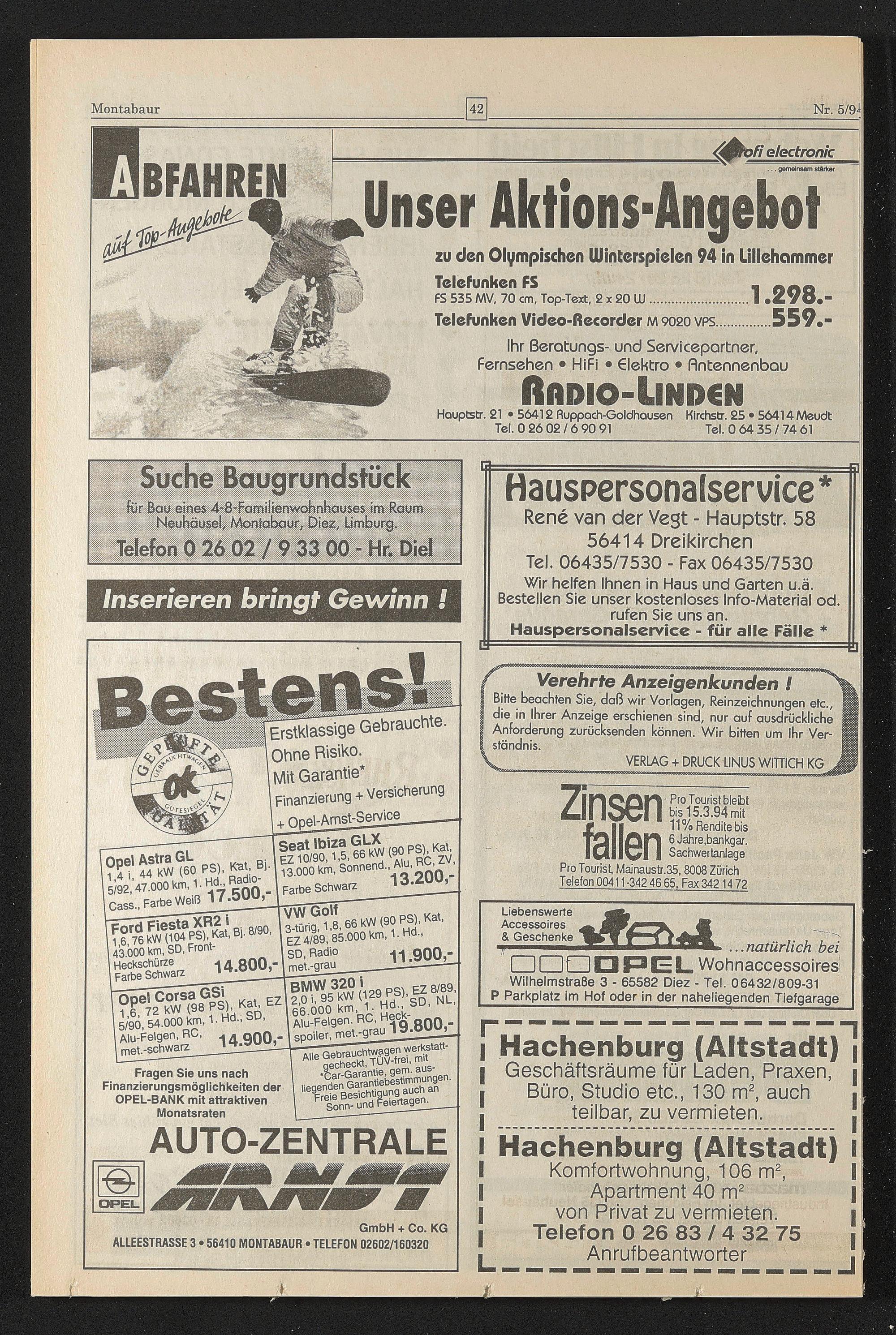 Verehrte Anzeigenkunden !