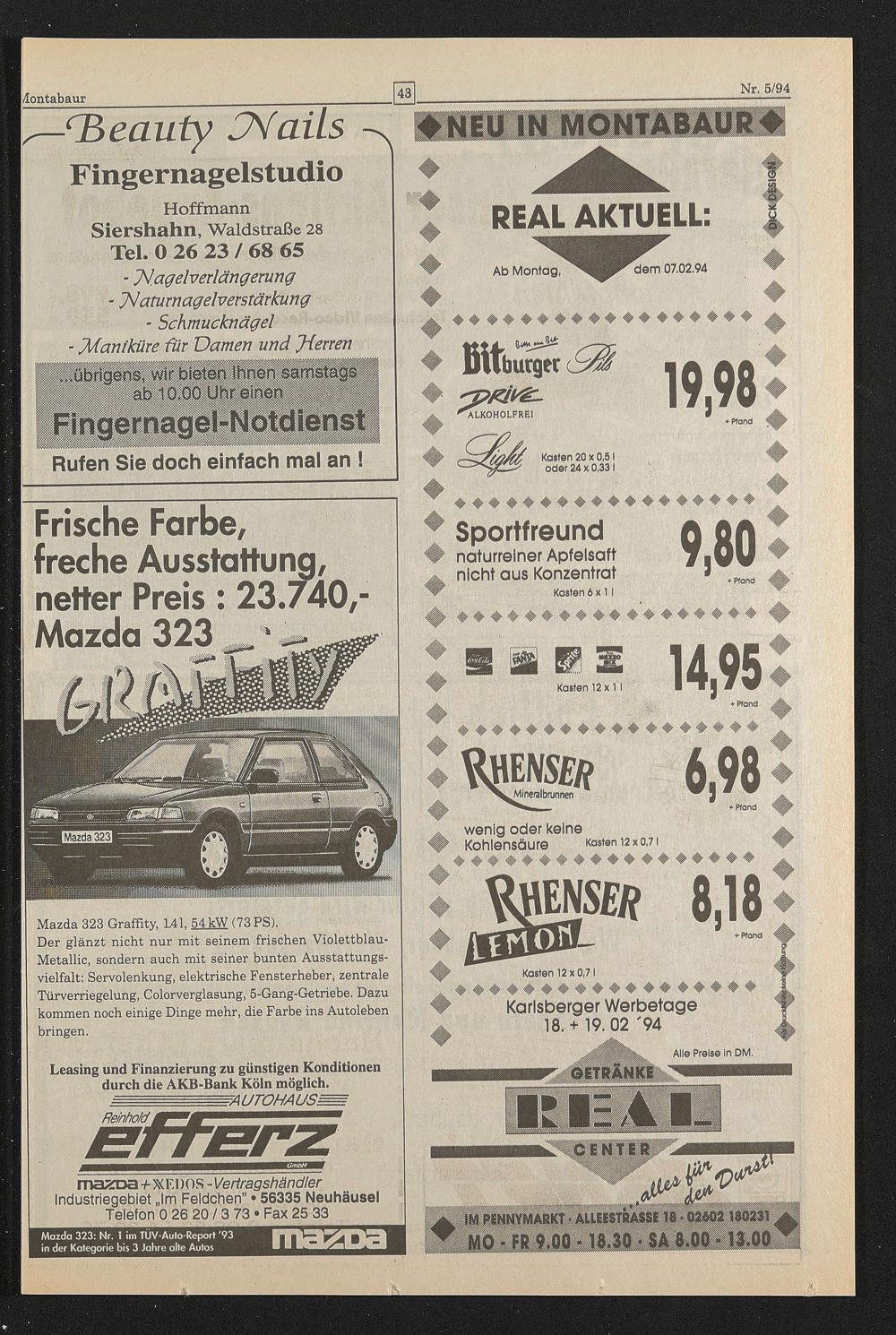 mazDa<fXGDOS -Vertragshändler Industriegebiet „Im Feldchen" • 56335 Neuhäusel Telefon 0 26 20 / 3 73 • Fax 25 33