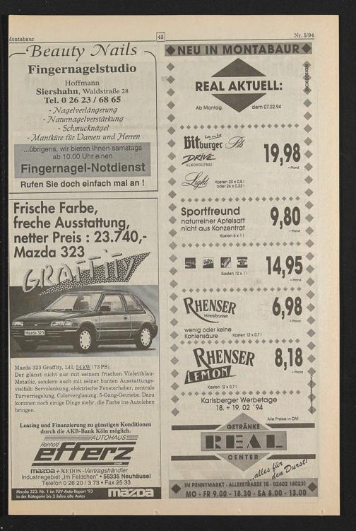Mazda 323: Nr. 1 im TÜV-Auto-Report '93 in der Kategorie bis 3 Jahre alte Autos