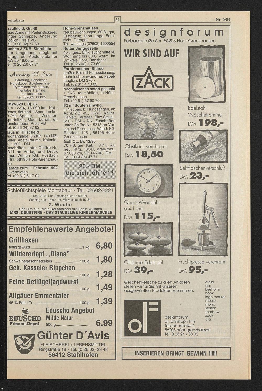uschriften unter Chiffre-Nr. 311 an Verlag und Druck inus Wittich KG, Postfach 451,56195 Höhr-Grenzhau- len _