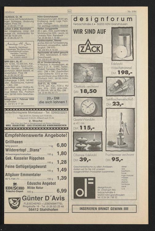 designforum dr. Christoph fritz ferbachstraße 6 56203 höhr-grenzhausen tel. 0 26 24 / 88 32