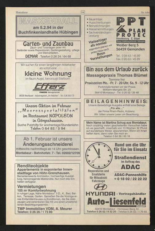 am 5.2.94 in der Buchfinkenlandhalle Hübingen