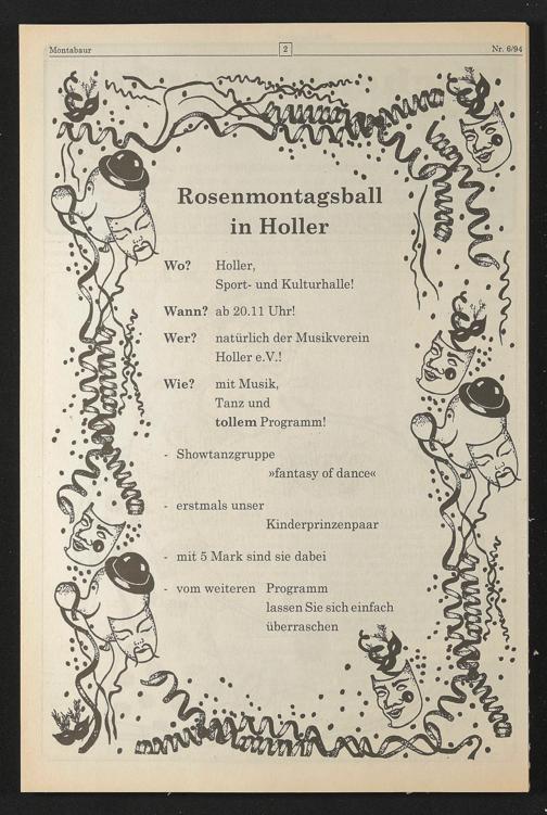 Rosenmontagsball in Holler