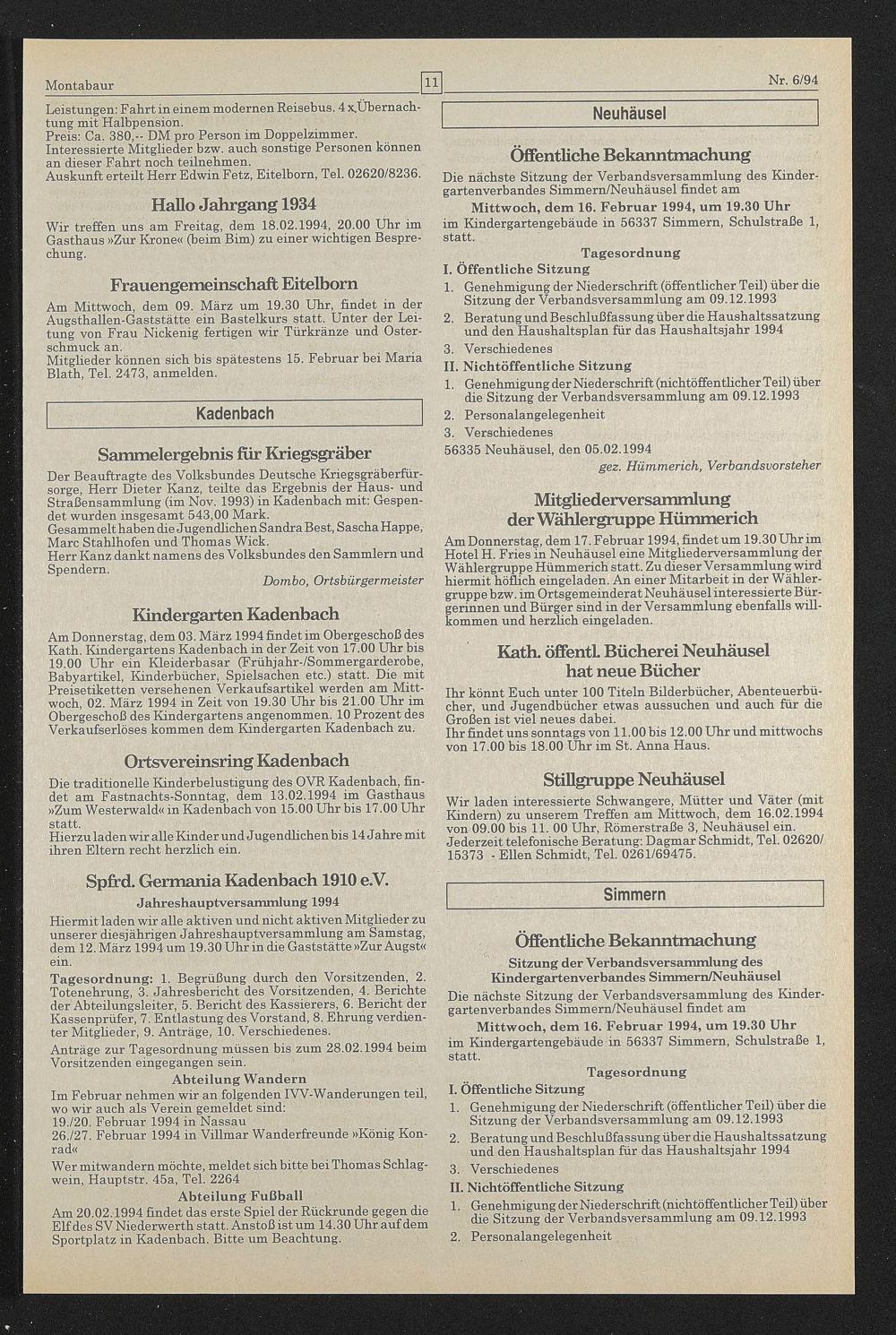 Mittwoch, dem 16. Februar 1994, um 19.30 Uhr im Kindergartengebäude in 56337 Simmern, Schulstraße 1, statt.